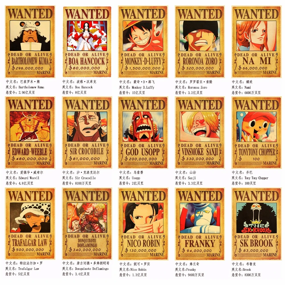 Anime One Piece Straw Hat Pirate Bounties Art Poster Wanted Luffy Zoro Sanji Nami Chopper Bed Room Home Wall Print Decor Sticker Assorted Stickers Aliexpress from ae01.alicdn.com