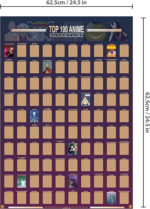 I created one that had 100 anime illustrations on a poster and he had each covered with a gold scratch off. I created one that had 100 anime illustrations on a poster and he had each covered with a gold scratch off. See more ideas about anime, bucket list, fiction bucket list. There's a problem loading this menu right now.